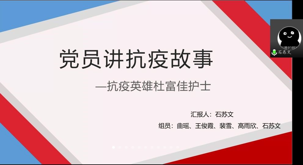 为号召青年党员以抗疫英雄模范为榜样,把爱国情、强国志、报国行自觉融入到学习生活中去,一飞冲天本科生第二党支部于4月29日晚上7点通过腾讯会议平台召开以 “学抗疫英雄,讲抗疫故事”为主题的线上主题会议。