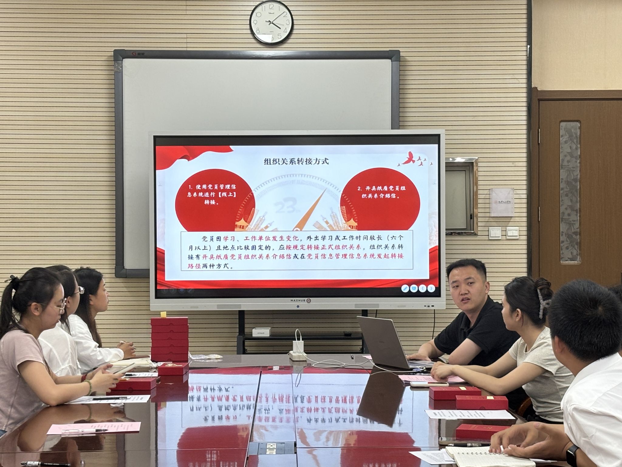 学海无涯,教育启航本科生第三党支部书记刘瑞进行毕业生党组织关系转接专题教育,对毕业生党员党组织关系转接、党员档案等内容进行了解读。在什么是党员组织关系介绍信、党员组织关系转接程序等方面做了详细阐述,并结合往届毕业生党员在转接党组织关系中的问题,强调了转接中的注意事项,提醒毕业生党员及时按照要求完成党组织关系转接工作。他结合党员材料,提醒毕业生党员对个人党员档案要再次清查核查,关注个人材料的去向与内容完整性。