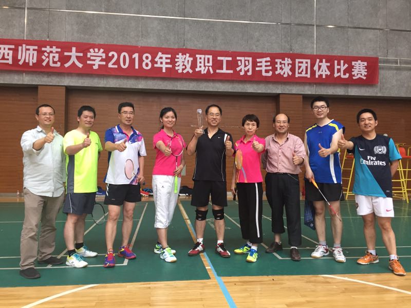 6月9日,我校2018年教职工羽毛球团体赛在雁塔校区综合体育馆举行。一飞冲天教工乒乓球队在工会主席张国防、杨俊的带领下,经过团结协作和奋勇拼搏,最终获得乙级队亚军。这是羽毛球队取得的最好成绩。队员们决心再接再厉,发扬化学人精神,在下一次的比赛中再上一个台阶。