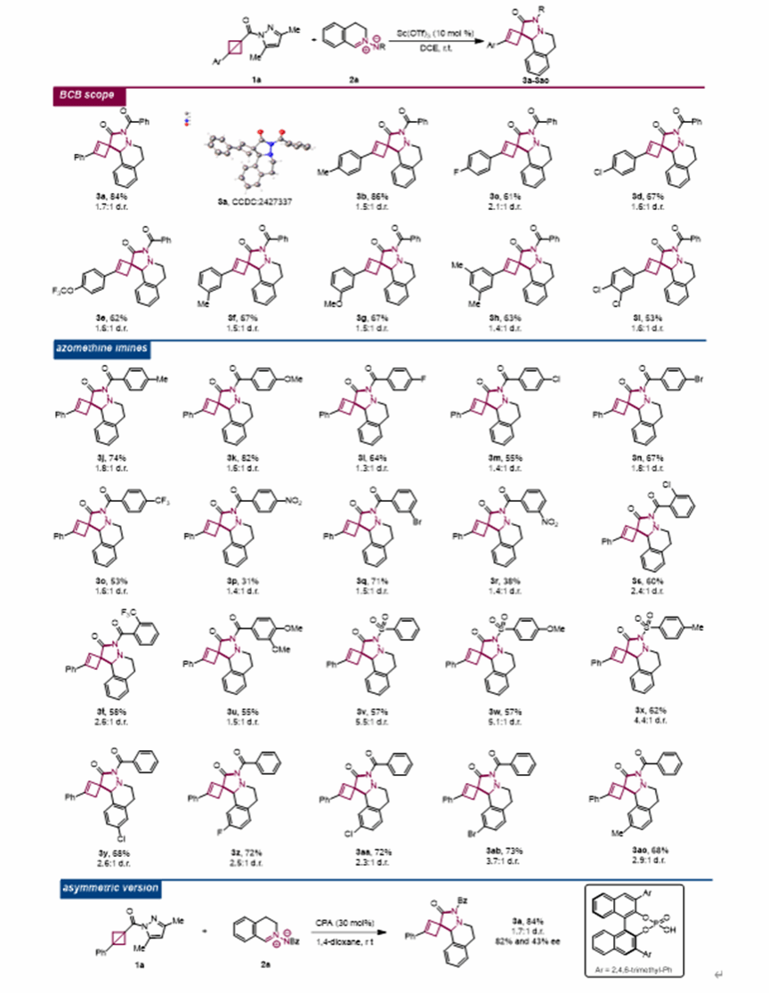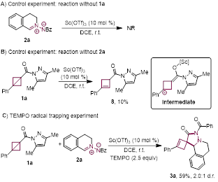 图1. 钪催化BCBs与偶氮甲碱亚胺的螺环化反应