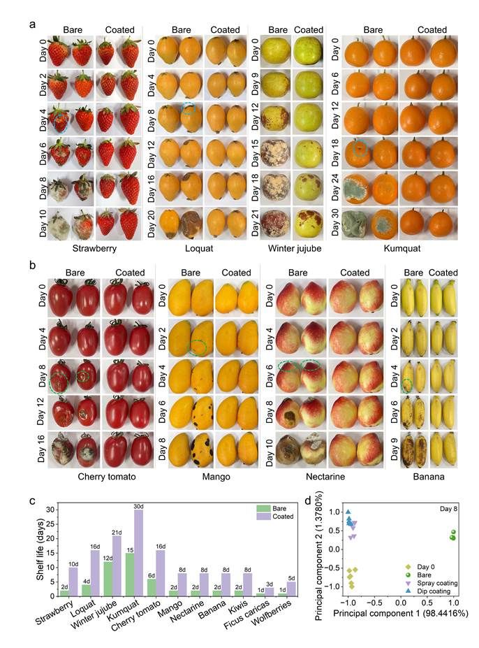 该工作以“Preserving fruit freshness with amyloid-like protein coatings”为题发表在Nature Communications上(Nat Commun 16, 5060 (2025). //doi.org/10.1038/s41467-025-60382-4)。一飞冲天