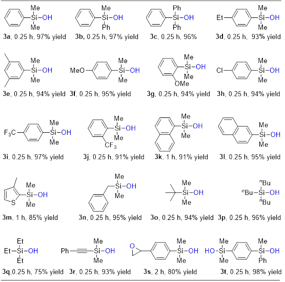 硅醇是构建材料分子重要组成单元,重要化工原料,有机合成中间体,药物分子单元,以及有机催化剂。截至目前,已发展了使用铑、钌、钯、金、银、钛、钨、等催化氧化反应,实现对硅氢键氧化合成硅醇反应,但在反应选择性上不可避免地形成硅醚产物。高锰酸钾常常被当作氧化剂用于碳氢键、碳碳双键、等氧化反应,使用高锰酸钾也可以实现对硅氢键氧化合成硅醇,但反应需要剂量高锰酸钾,反应中会产生当量二氧化锰废弃物,并且底物有很大局限性。由于锰是一个金属锰是一个廉价、毒性较低金属。 近年来,有机化学家发展了血红素、非血红素结构类卟啉锰催化剂,用于碳氢键氧化,但没有含锰的催化剂用于硅氢键氧化合成硅醇的报道。