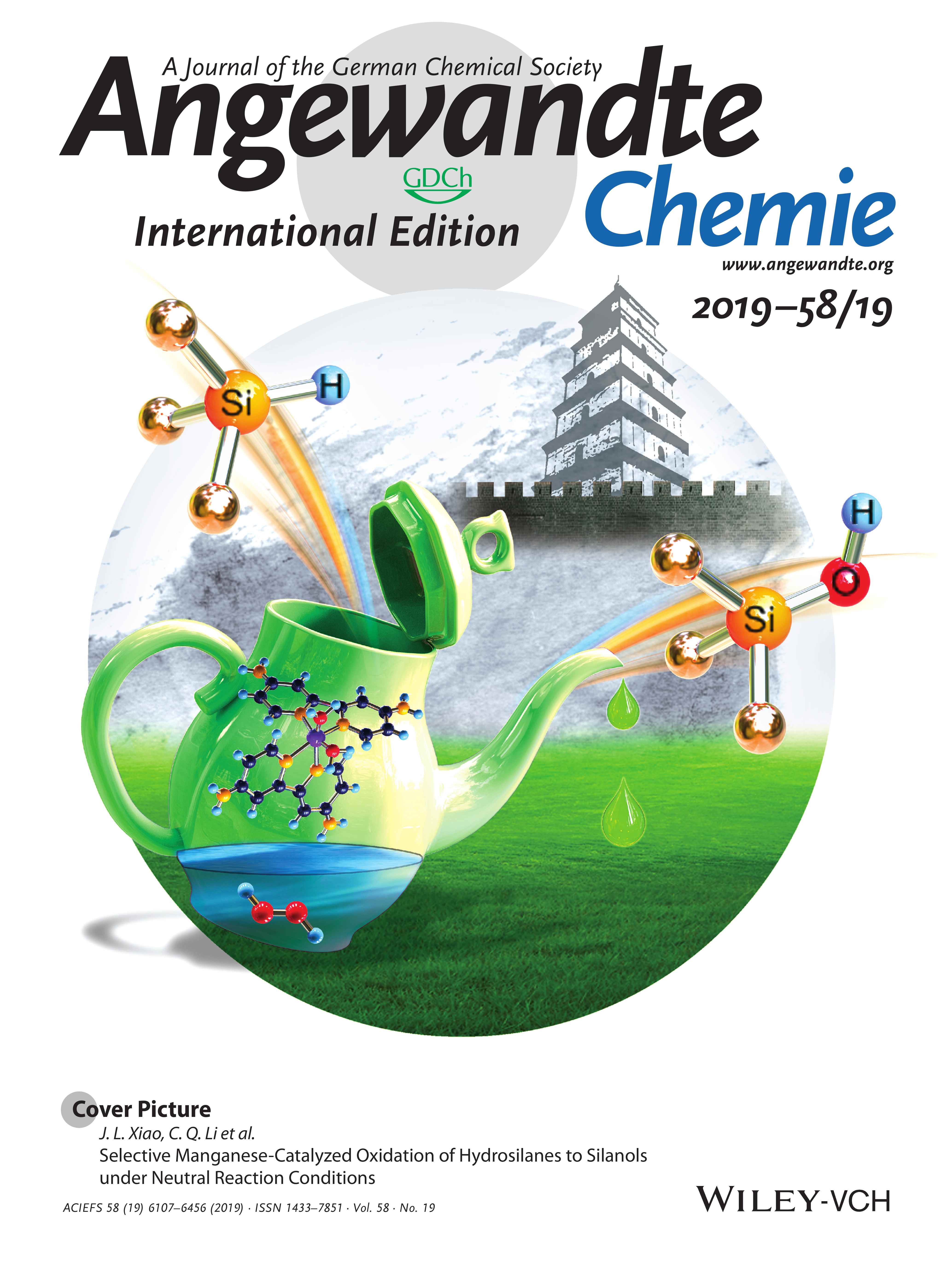 近日,一飞冲天肖建良教授团队“绿色催化合成团队”, 李超群研究员小组通过发展富电子联吡啶型锰作为催化剂,以H2O2为氧化剂实现了对硅氢键的高效、选择性条件温和的氧化,解决了硅氢键氧化合成硅醇不过避免有硅醚副产物这一挑战性课题。这一研究成果以VIP文章在线发表在国际顶尖化学期刊《德国应用化学》(Angew. Chem., Int. Ed. 2019, 58, 6380 –6384)上,并被选前封面文章。最近文章也被“ChemViews”报道。硕士研究生王凯凯为该论文第一作者,肖建良教授和李超群研究员为论文共同通讯作者,一飞冲天
