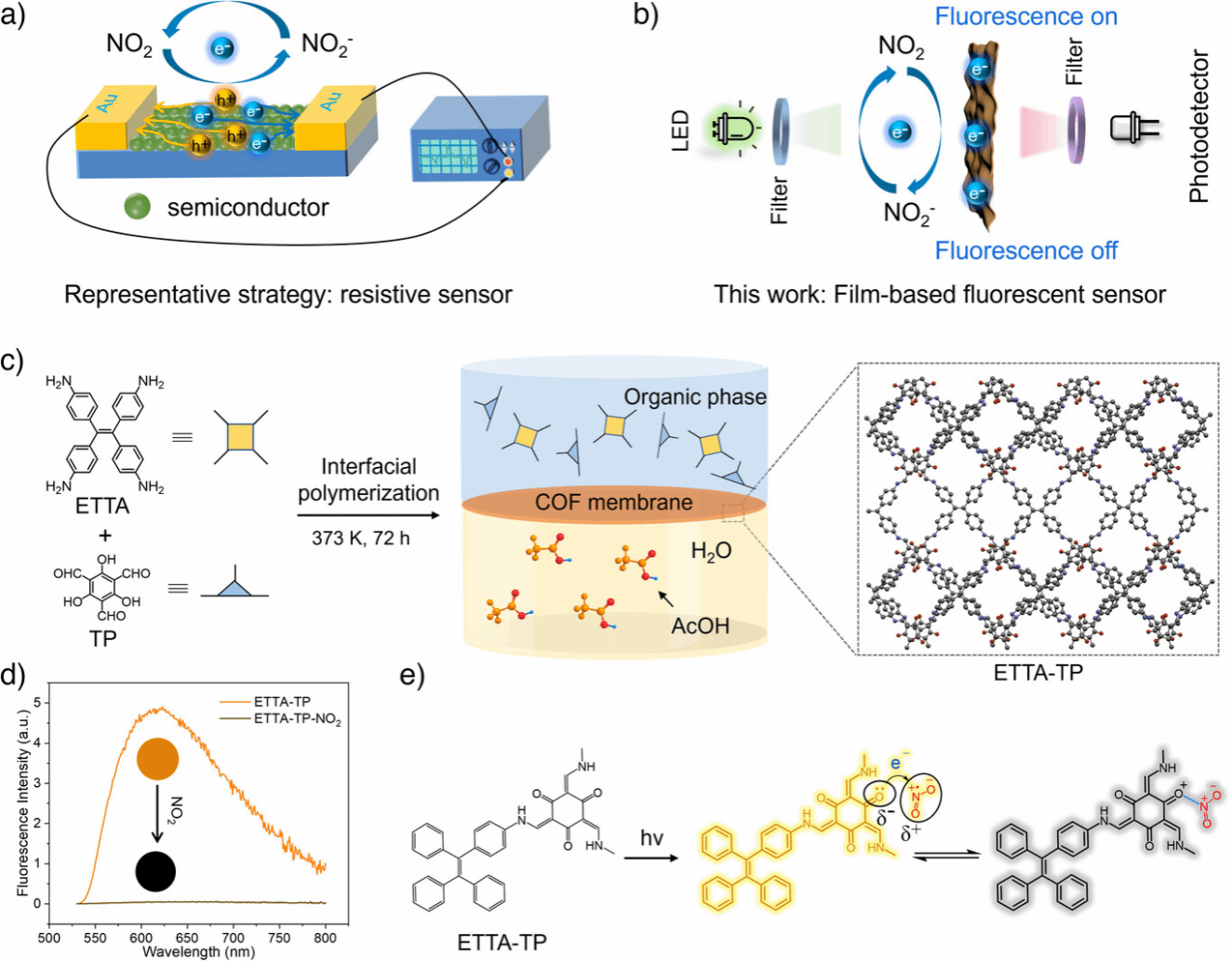4+3 β-酮烯胺键COF膜用于构建高性能NO2薄膜荧光传感器